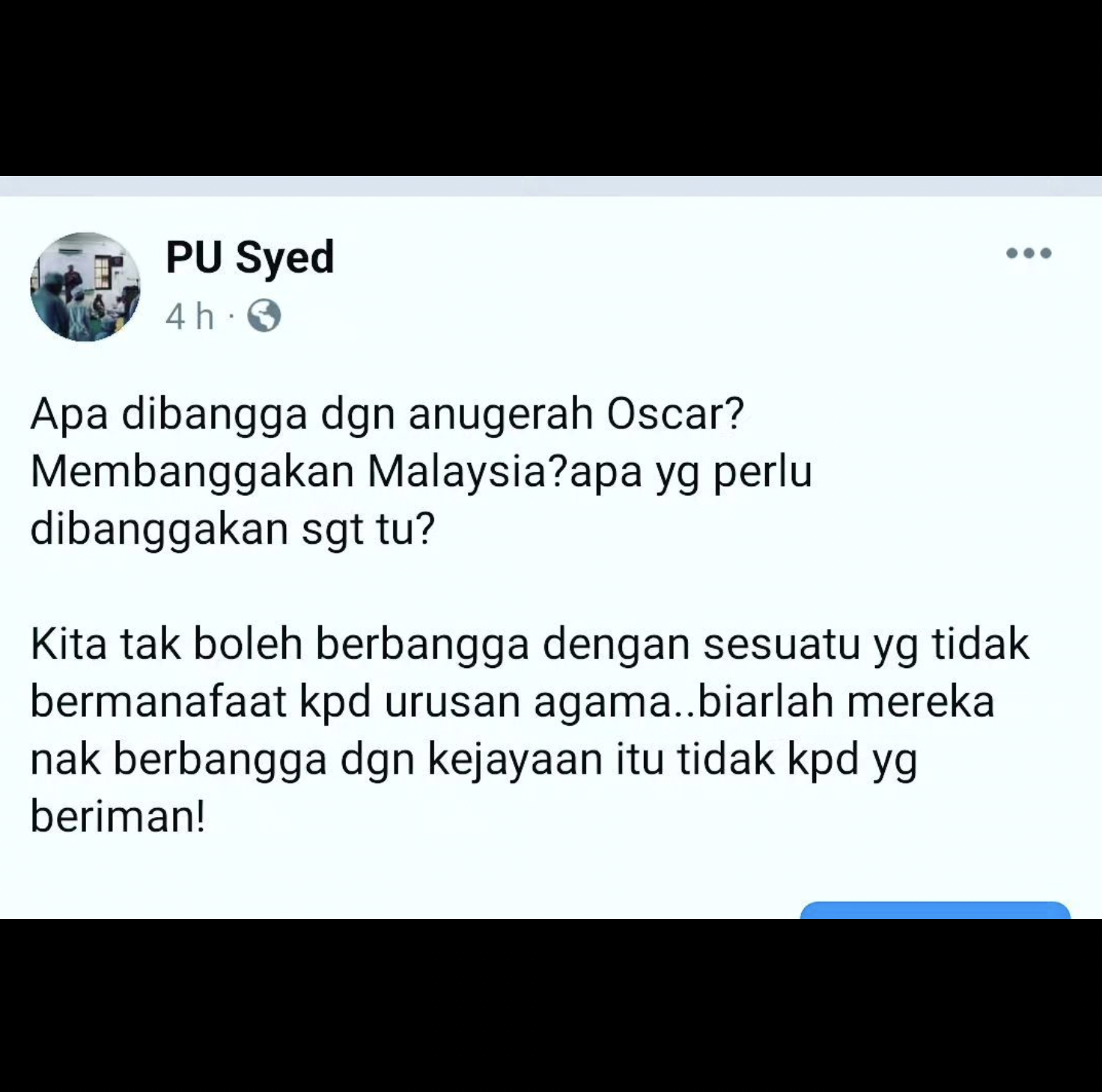 "Apa dibangga dengan anugerah Oscar? Membanggakan Malaysia? Apa yang perlu dibanggakan sangat tu?"
