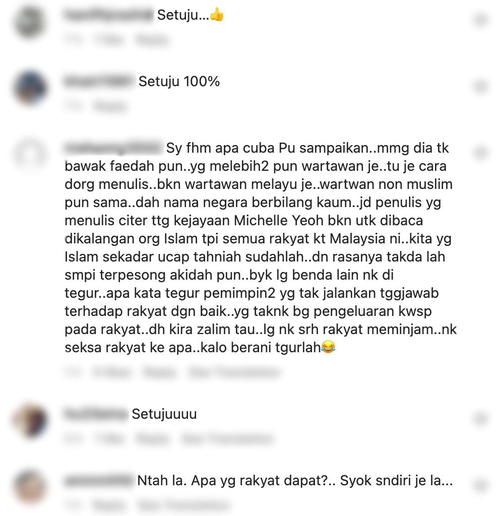 Berikut di bawah adalah antara komen daripada netizen di Instagram: