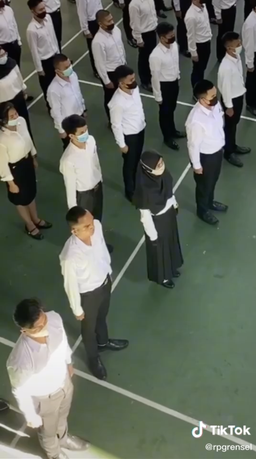 Menerusi video tersebut, kelihatan sekumpulan pelajar sedang membuat latihan kawad di sebuah sekolah di Indonesia.