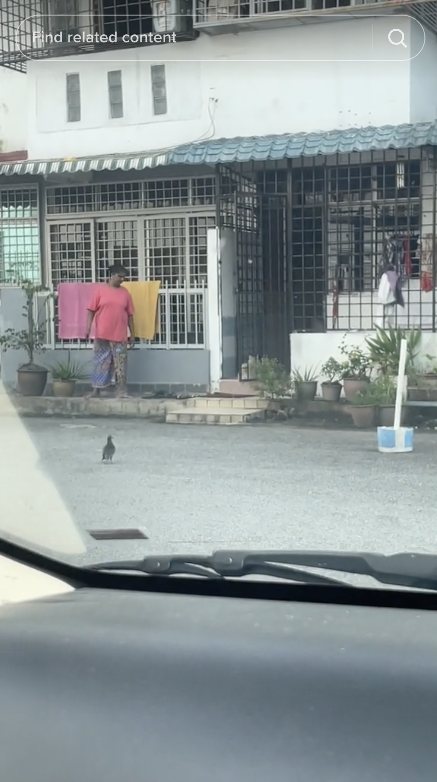 Menerusi video tersebut, kelihatan seorang individu sedang merakam seorang aunty di sebuah kawasan perumahan.
