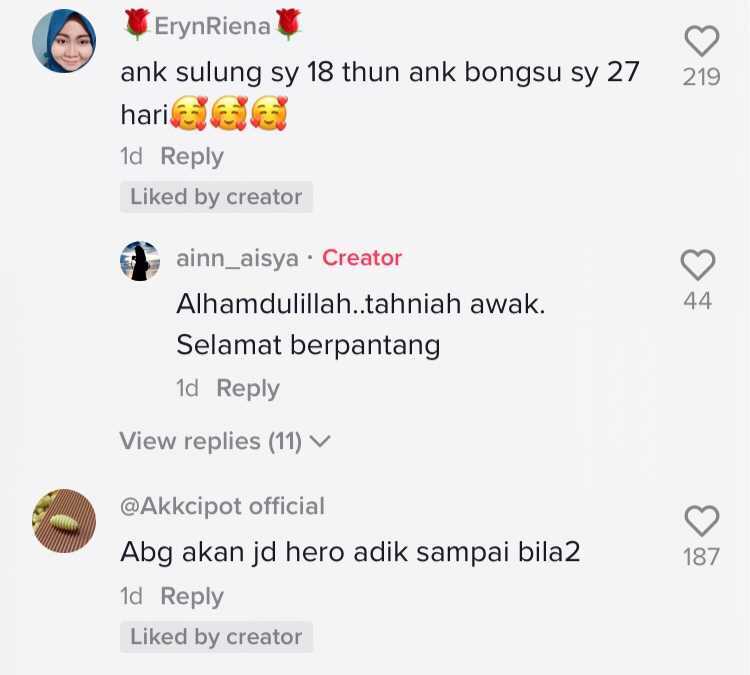 Berikut di bawah adalah antara komen daripada netizen di TikTok: