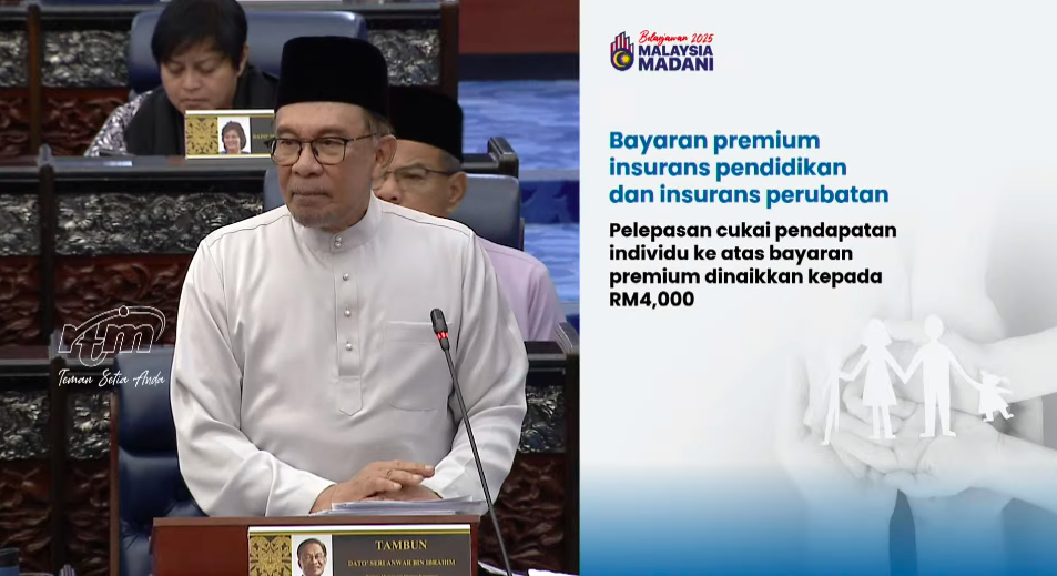 Perdana Menteri, Datuk Seri Anwar Ibrahim mengumumkan pelepasan cukai pendapatan individu ke atas bayaran premium insurans pendidikan dan insurans perubatan dinaikkan kepada RM4,000