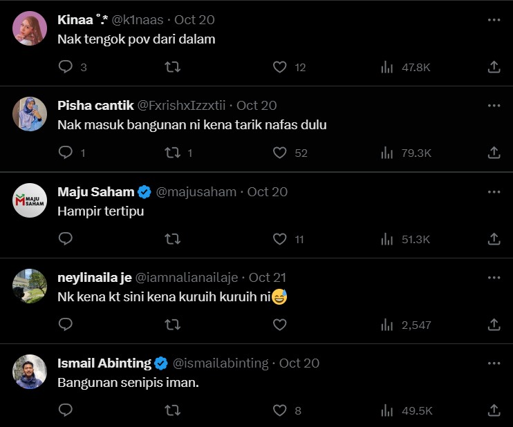 "Nak masuk bangunan ni kena tarik nafas dulu" – Netizen