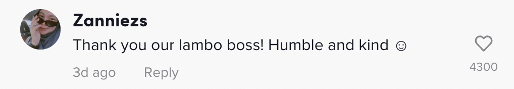 "Thank you our lambo boss! Humble and kind" – Netizen