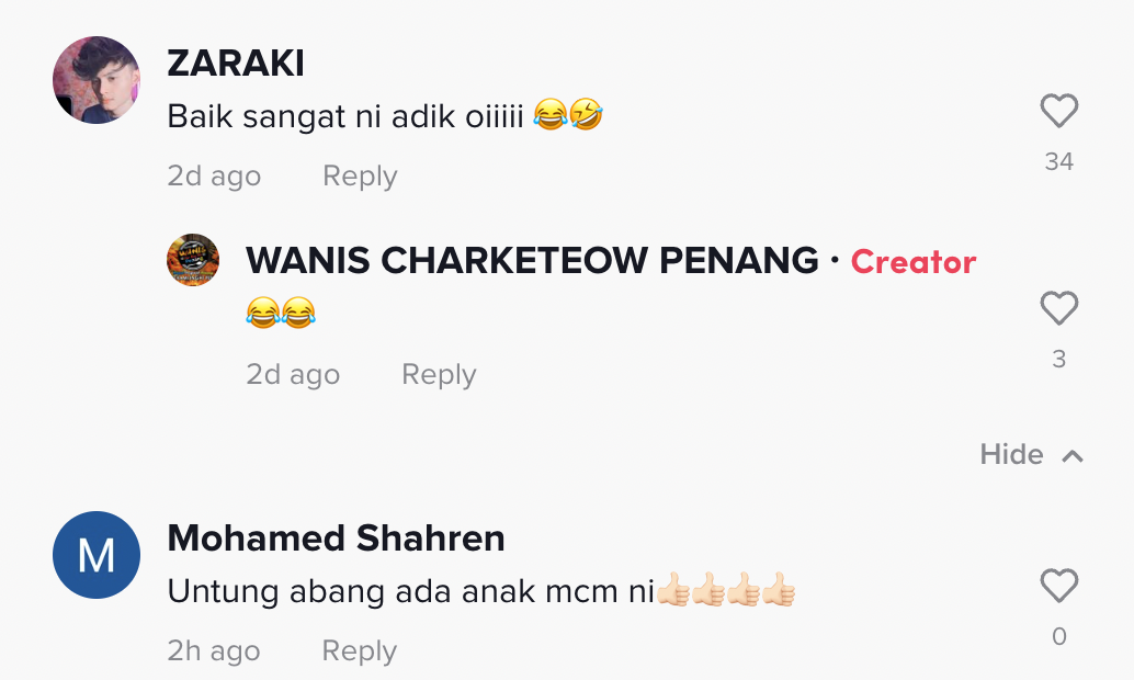 Berikut di bawah adalah antara komen daripada netizen di TikTok: