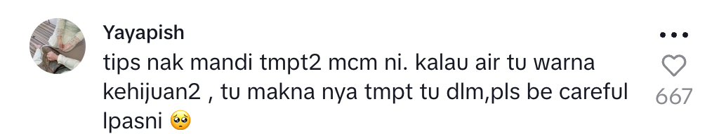 "Aku tak sempat nak cakap tempat tu dalam, eh dia dah bantai terjun dulu. Nasib tak jadi hal oi," tulisnya.