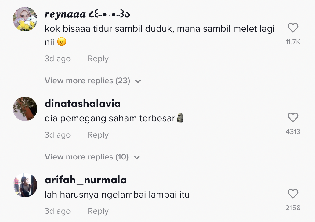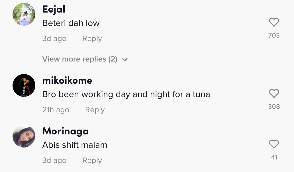 Berikut di bawah adalah antara komen daripada netizen di TikTok: