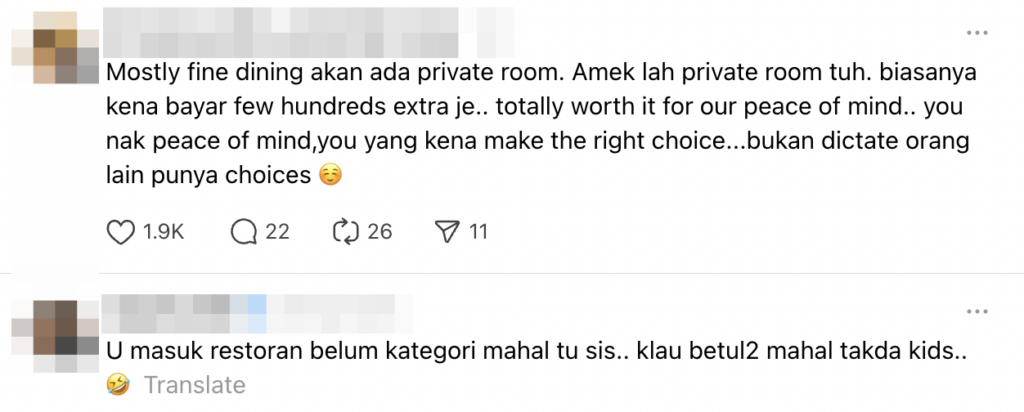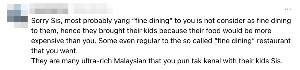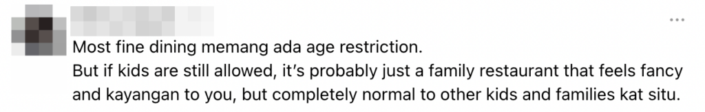 "Most fine dining memang ada age restriction. But if kids are still allowed, it's probably just a family restaurant" – Netizen