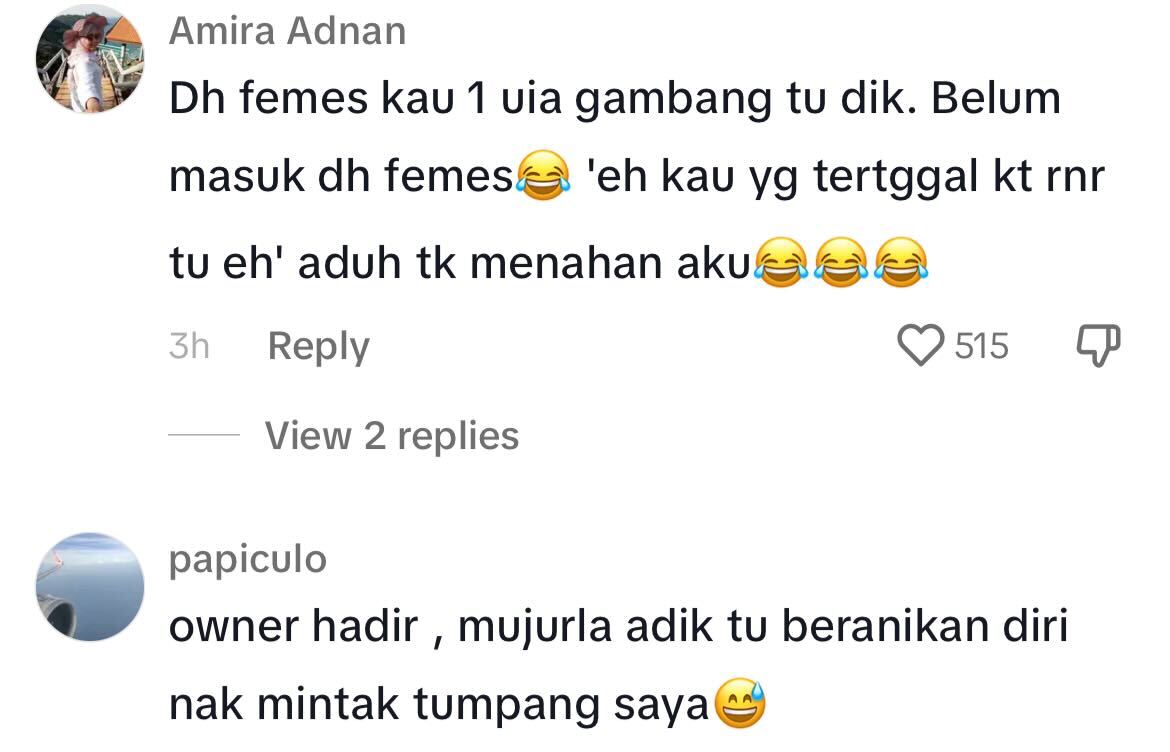 Sementara itu, tinjauan di ruangan komen mendapati rata-rata netizen turut terhibur dan memberikan pelbagai reaksi mereka.