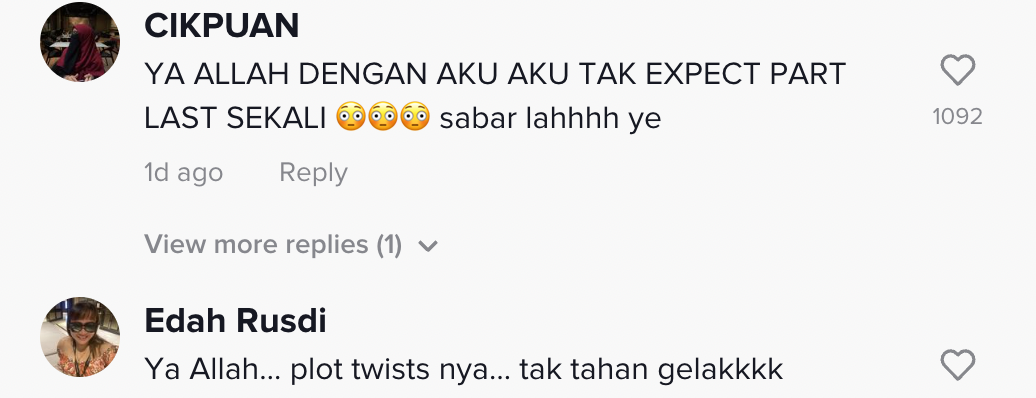 Berikut di bawah adalah antara komen daripada netizen di TikTok: