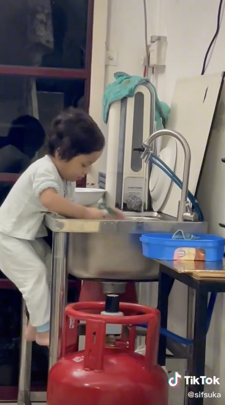 Cover image via @sifsuka (TikTok)Mengajar anak-anak membuat kerja rumah sememangnya penting