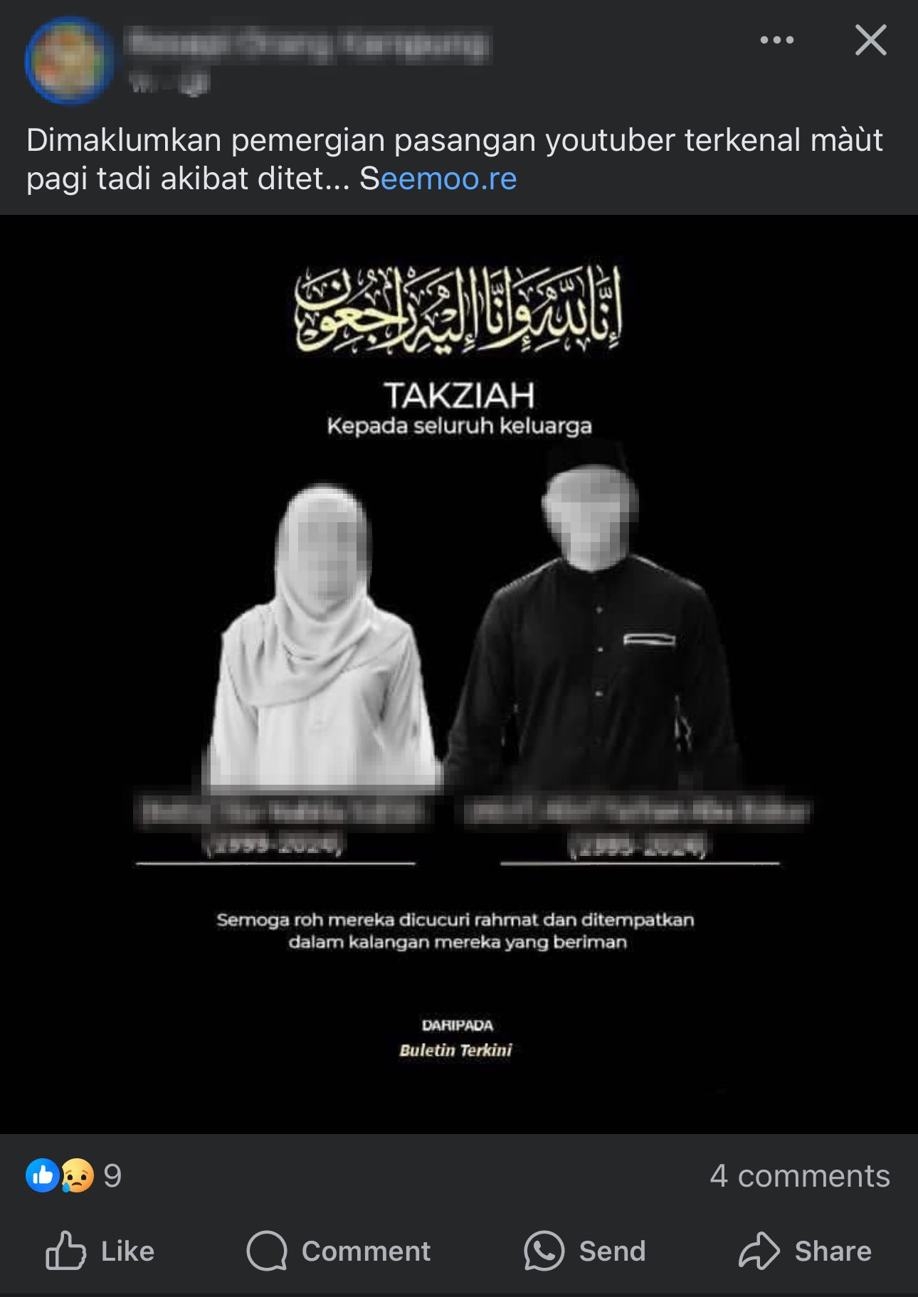 Seorang individu mendedahkan kegiatan beberapa Facebook Page yang meletakkan link affiliate dengan membuat kandungan palsu berkenaan orang meninggal dunia