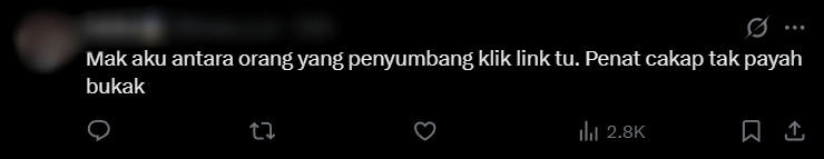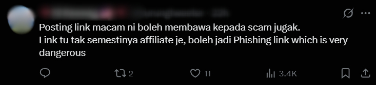 Terdapat juga komen yang mengingatkan link tersebut juga dikhuatiri scam kerana ia tidak semestinya pautan affiliate dan berkemungkinan ia adalah phishing.