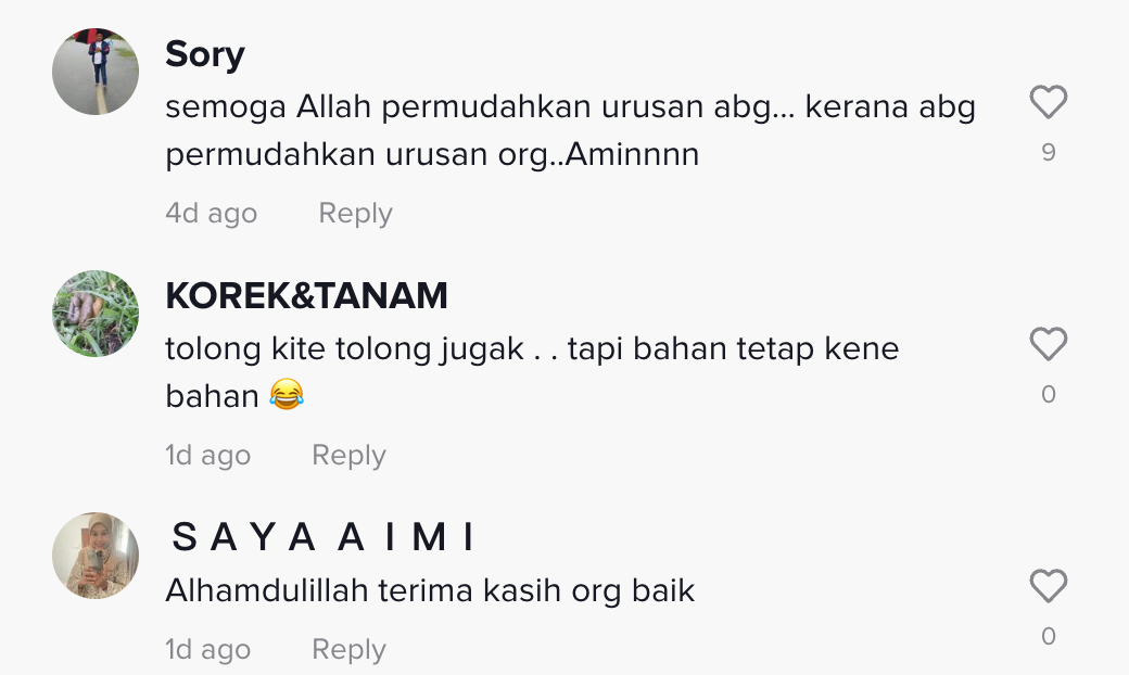 Berikut di bawah adalah antara komen daripada netizen di TikTok: