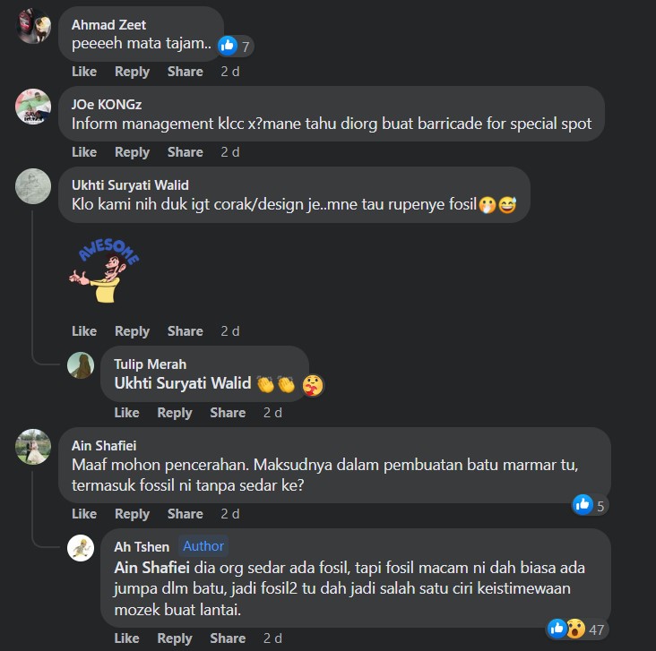 "Macam pernah nampak tapi masa tu ingatkan lantai kotor, rupanya fosil" – Netizen