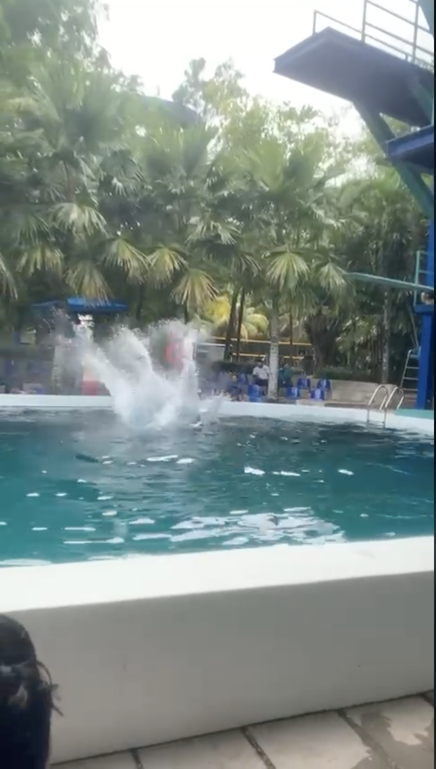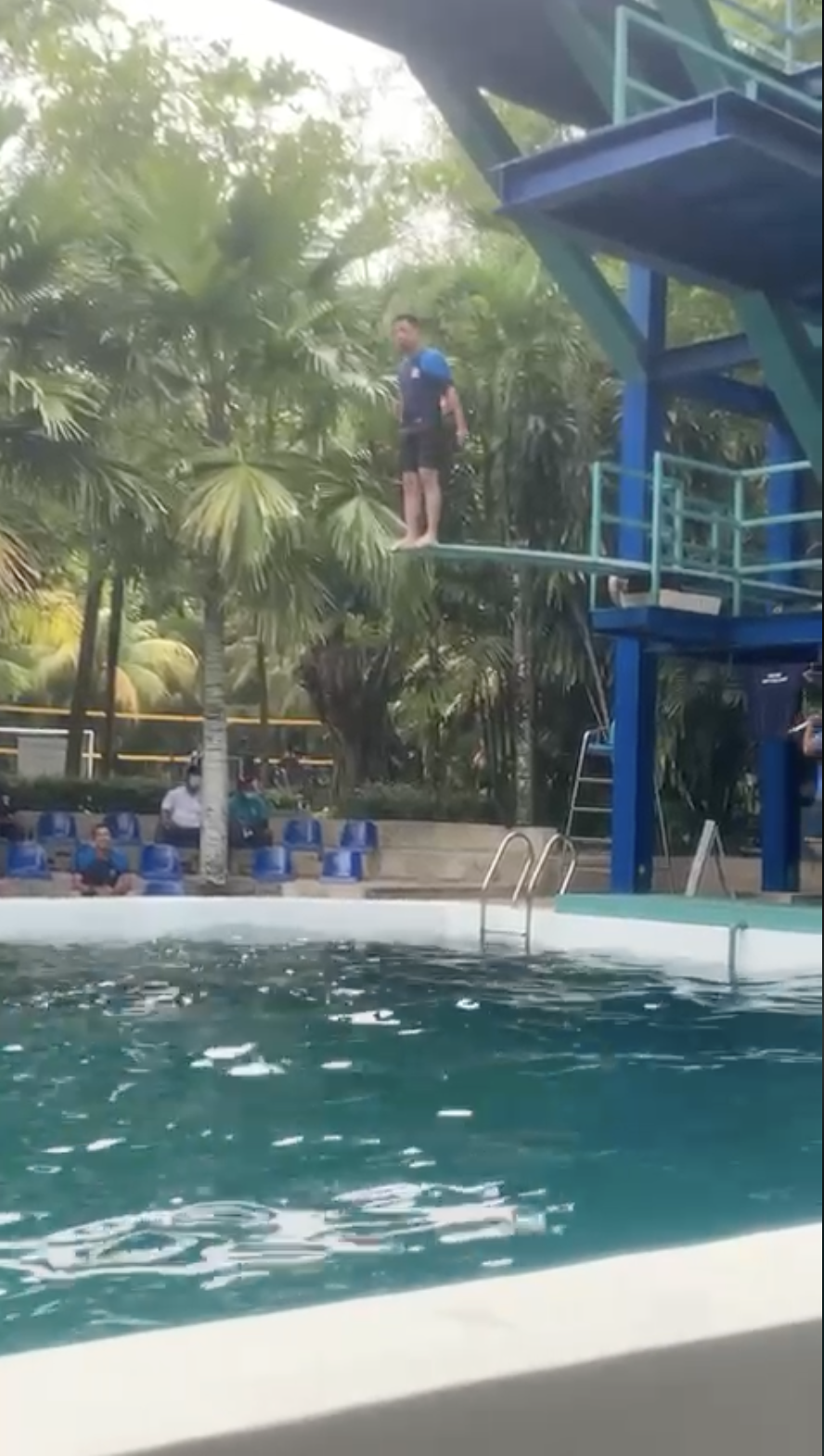 Menerusi video tersebut, kelihatan seorang lelaki sedang bersiap sedia di papan anjal untuk melakukan aksi divingnya.