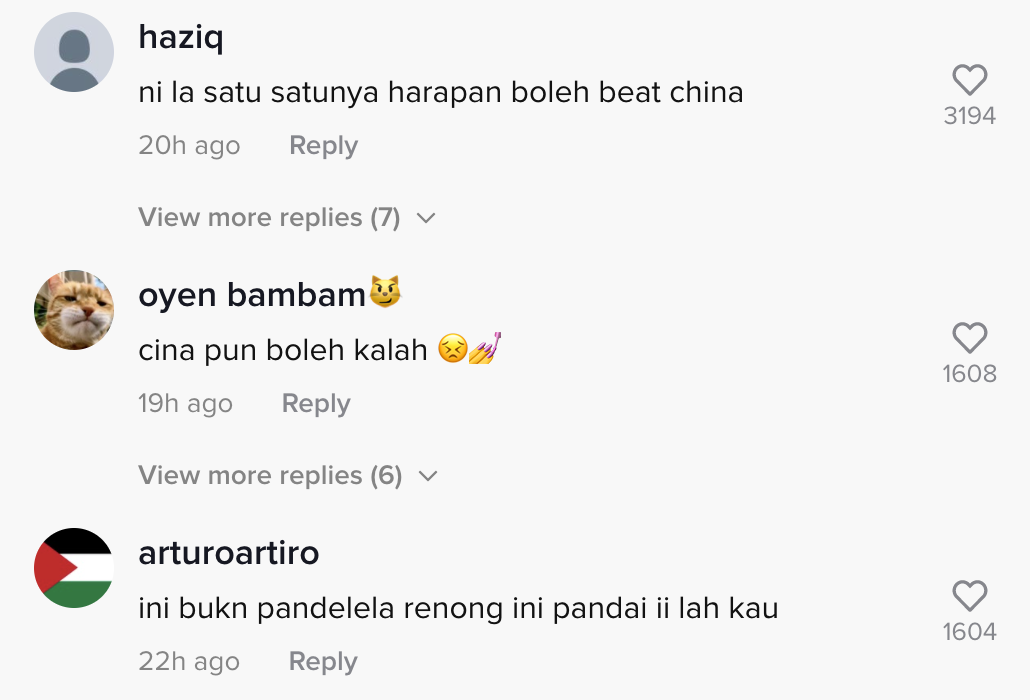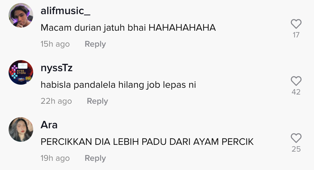 Berikut di bawah adalah antara komen menarik daripada netizen di TikTok: