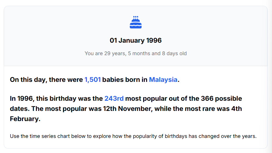 Boleh Check Berapa Ramai Share Birthday Sama Dengan Korang Di Malaysia Dekat Website Ini!