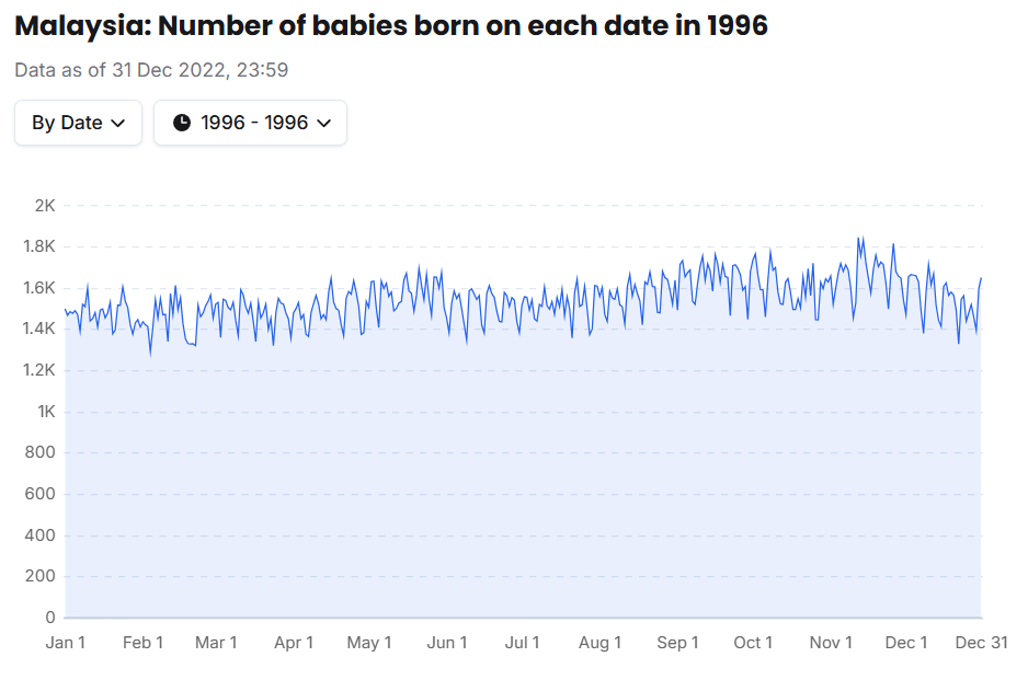 Menerusi data yang diberikan ini, korang boleh tengok sama ada birthday korang ini rare ataupun tidak di samping korang boleh tahu tarikh lahir yang paling popular pada tahun itu.