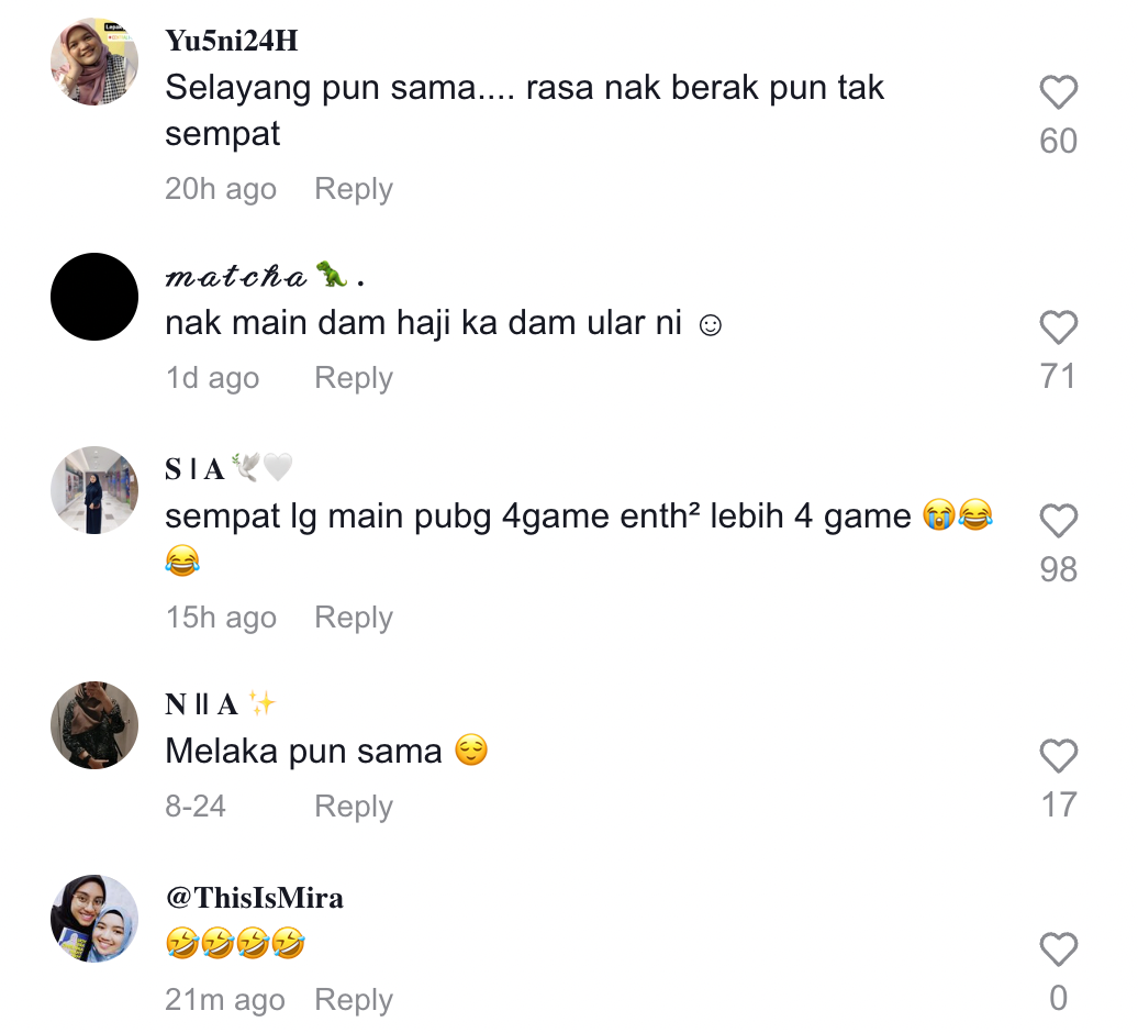 Dalam pada itu, tinjauan di ruangan komen mendapati rata-rata netizen turut terhibur dan ramai yang boleh relate dengan situasi tersebut.