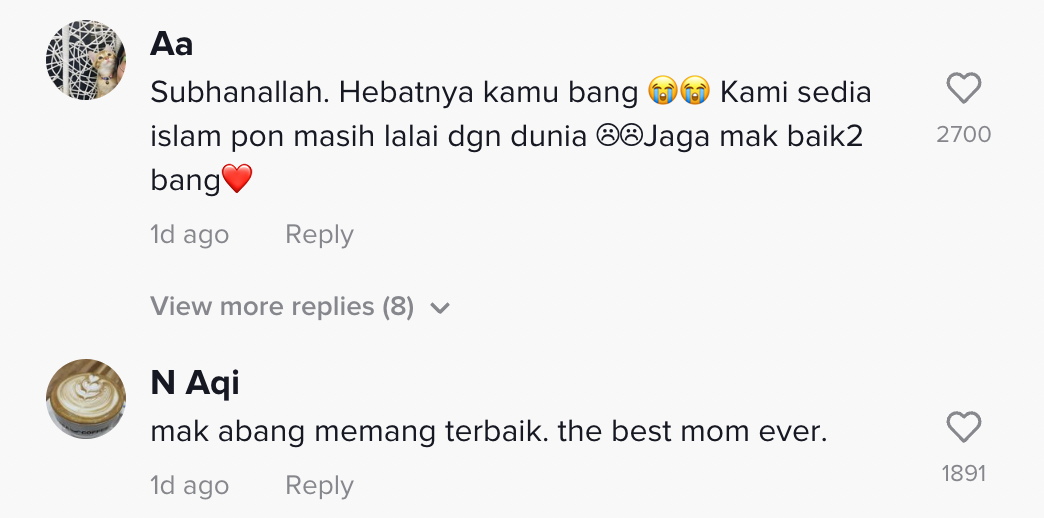 "Mak abang memang terbaik. The best mom ever" – Netizen