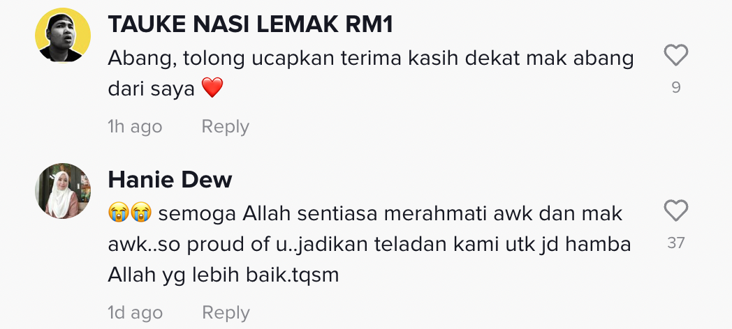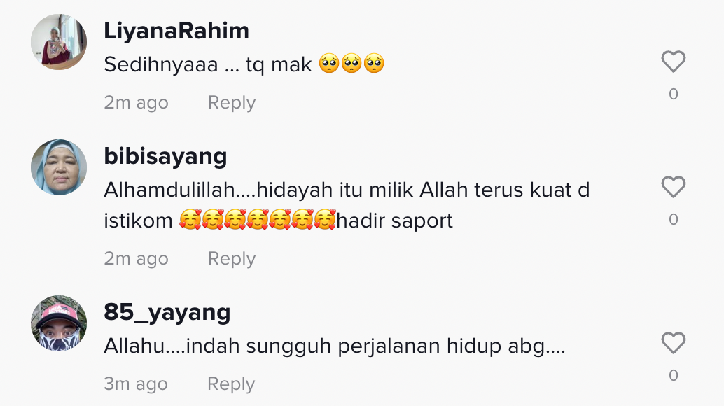 Sementara itu, tinjauan di ruangan komen mendapati rata-rata netizen turut sebak dan memberikan pelbagai kata-kata positif buat dirinya.