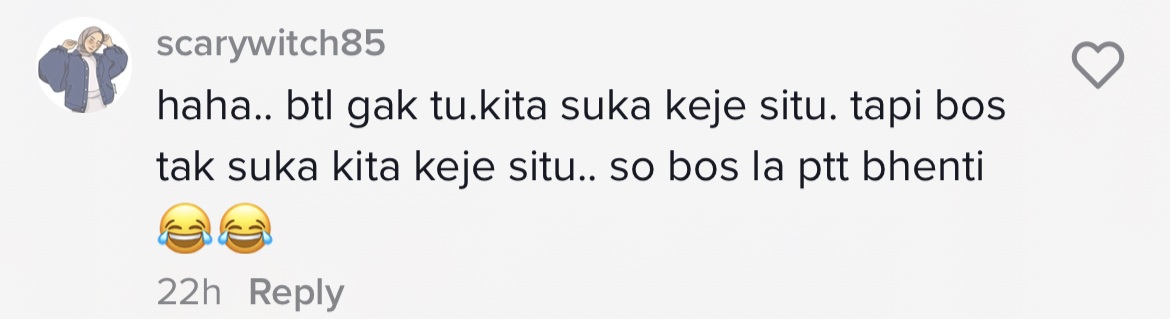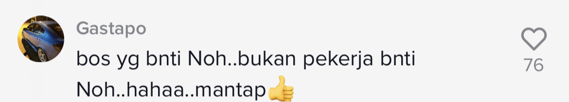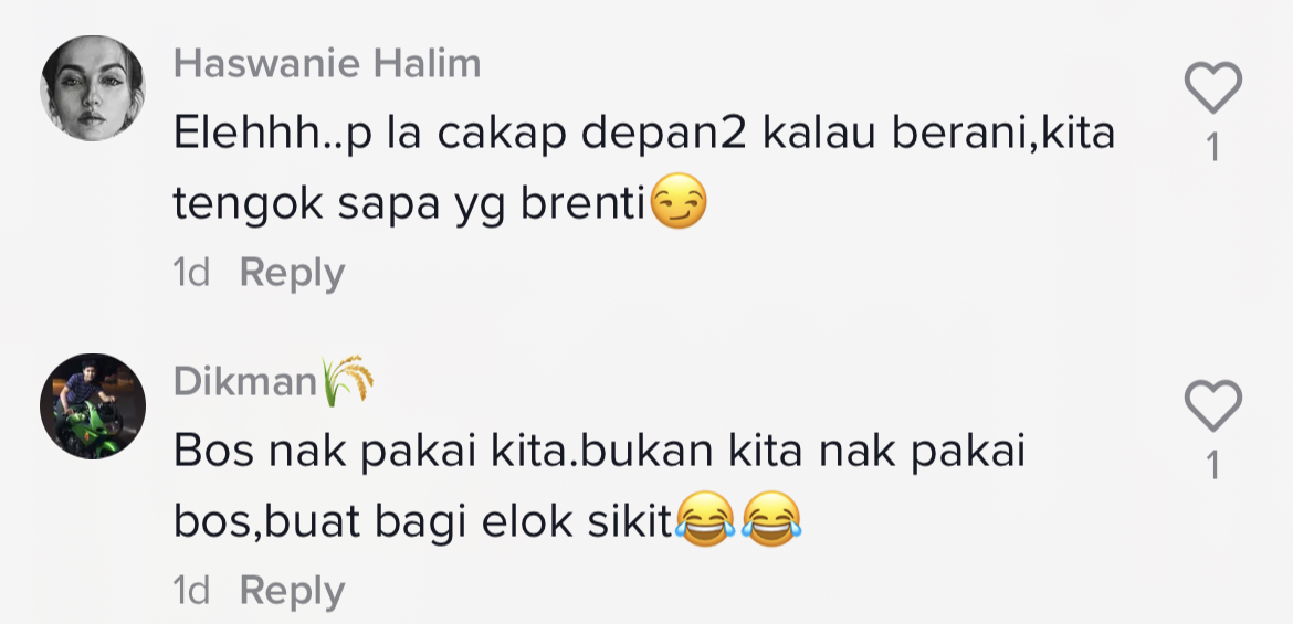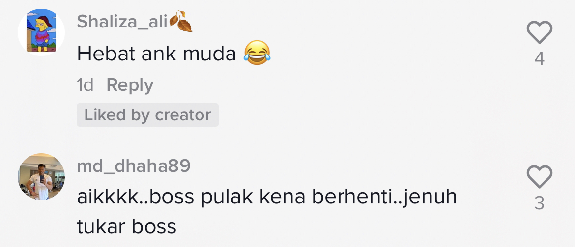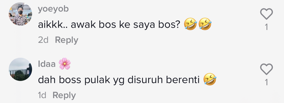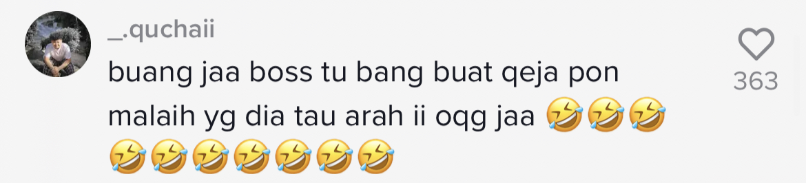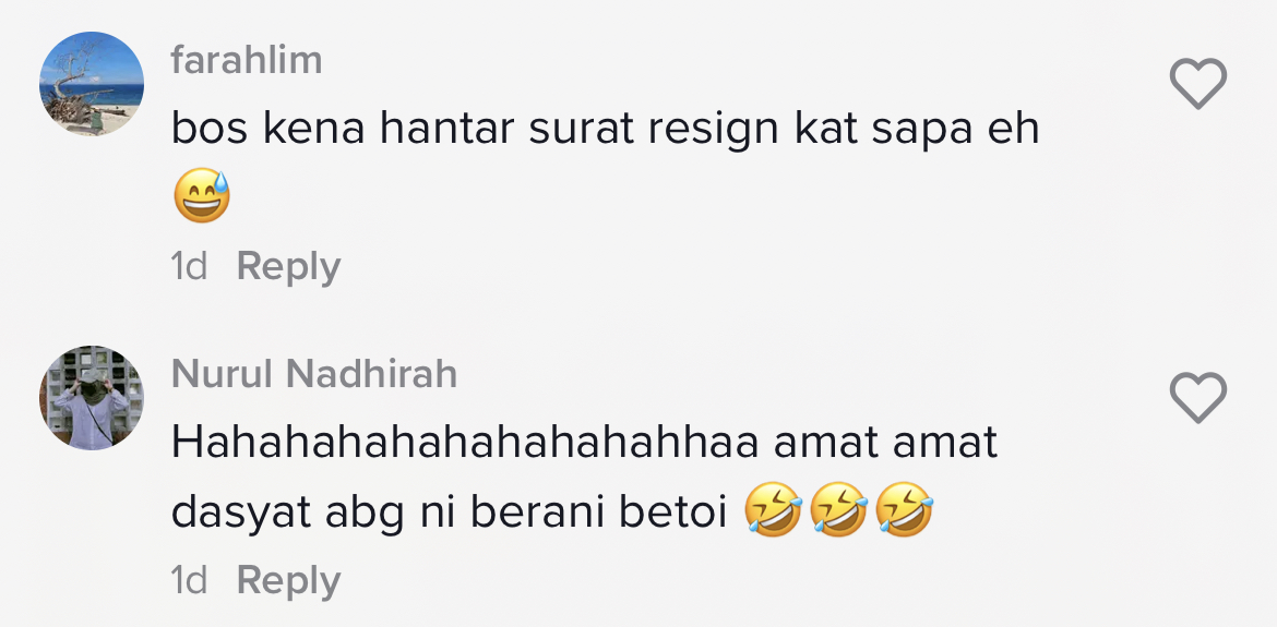 Bukan biasa biasa ya abang ni bos pula yang disuruh berhenti. Nasib baik bos tak ada TikTok kalau tak habislah :'D