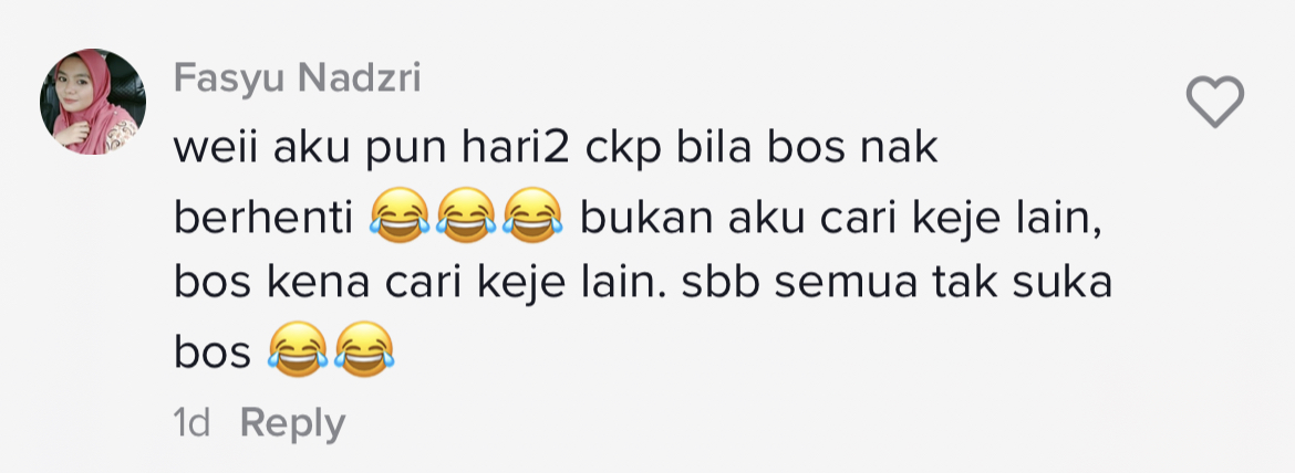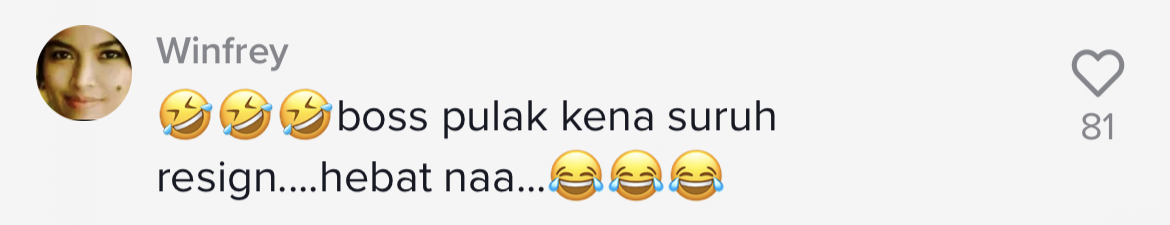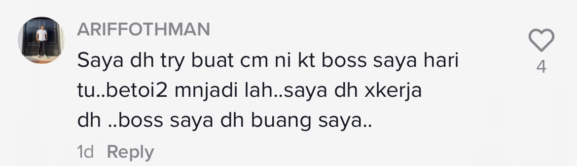 "Saya dah try buat macam ni kat bos saya, betul-betul menjadi lah, saya dah tak kerja, bos saya dah buang saya" – Netizen