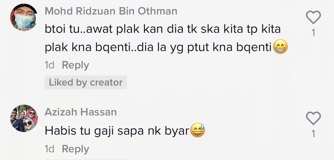 Berikut di bawah adalah antara komen menarik daripada netizen di TikTok:
