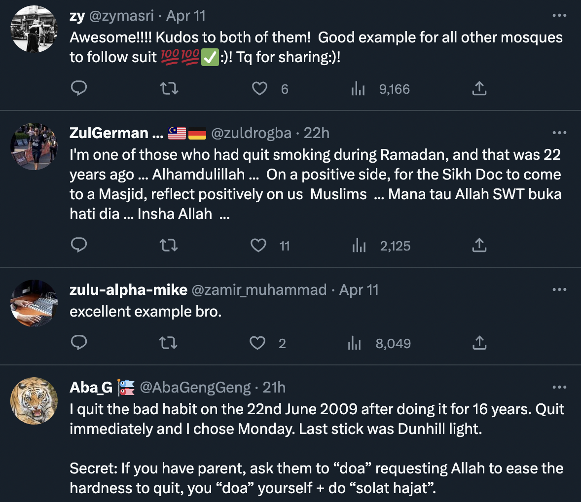 Dalam pada itu, tinjauan di ruangan komen mendapati rata-rata netizen turut memuji pengurusan masjid berkenaan dan memberikan pelbagai reaksi positif.