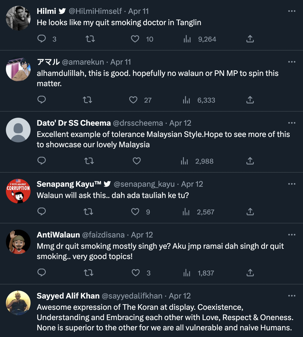 "Excellent example of tolerance Malaysian Style" – Netizen