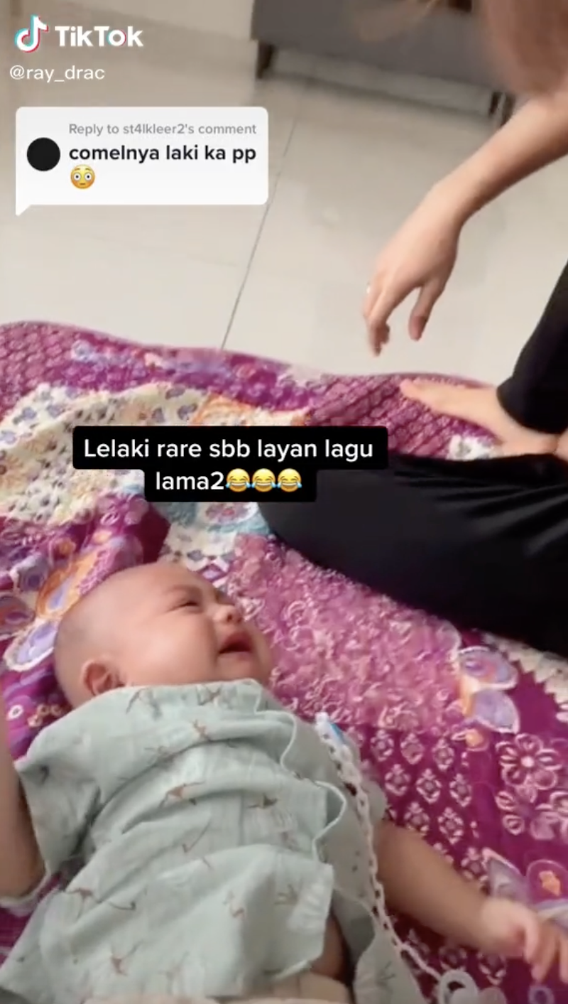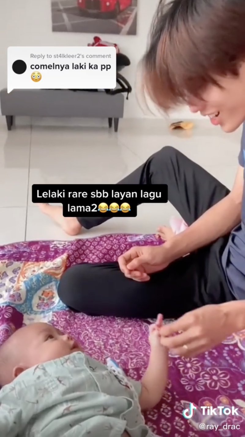 Menerusi video yang dimuat naik oleh @ray_drac di TikTok, kelihatan seorang bayi sedang menangis sambil diperhatikan oleh ayahnya di sisi.
