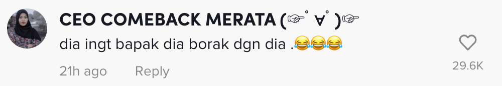 Berikut di bawah adalah antara komen menarik daripada netizen di TikTok: