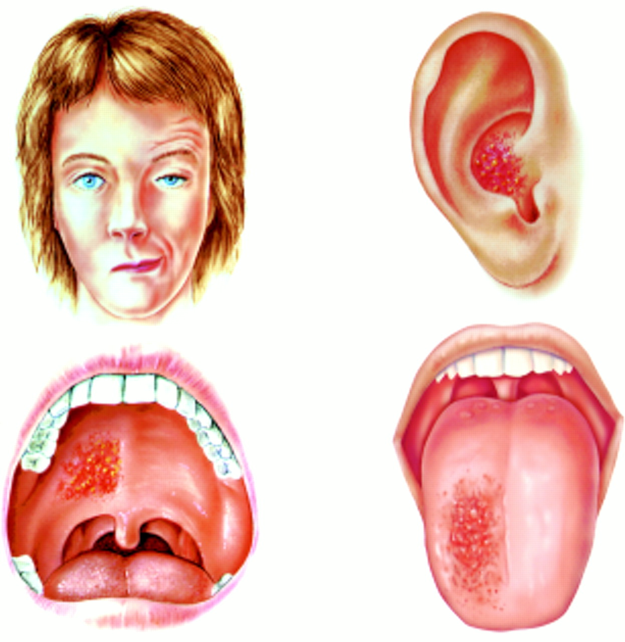 Sindrom Ramsay Hunt kelihatan yang hampir serupa dengan Bell's palsy, tetapi gejalanya lebih banyak, iaitu: