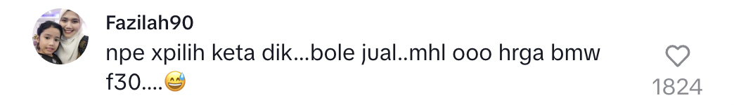 "Kenapa tak pilih kereta dik, boleh jual mahal oo harga BMW F30" – Netizen