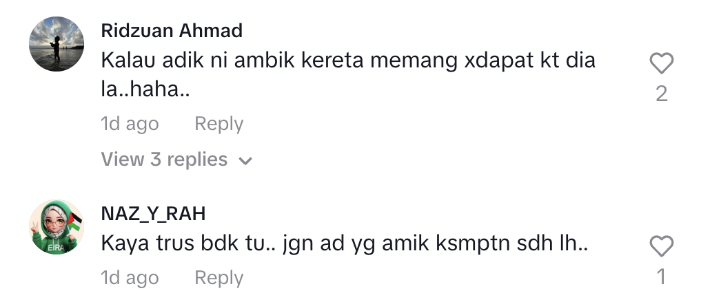 Berikut di bawah adalah antara komen daripada netizen di TikTok: