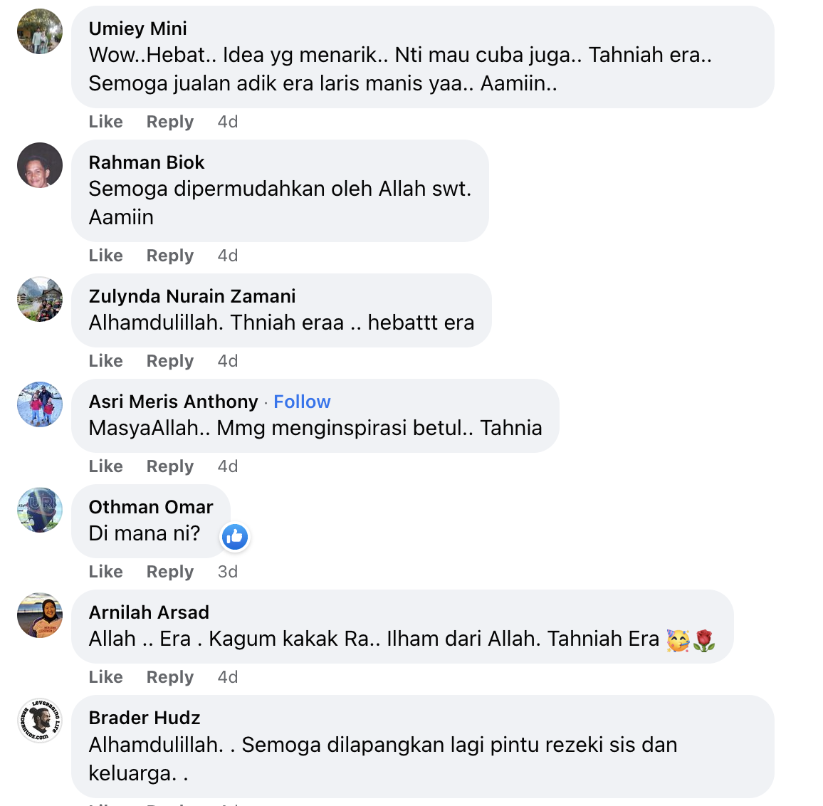 Berikut di bawah adalah antara komen daripada netizen di Facebook: