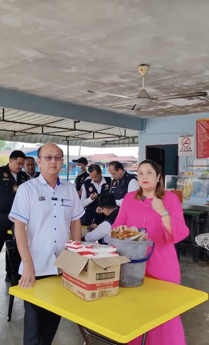 Menerusi video di akaun TikTok @kpdnmelaka, pada awalnya pihak berkuasa hanya bertanyakan kepada seorang pekerja yang warga Rohingya mengenai minyak masak paket yang dijumpai dalam premis tersebut.