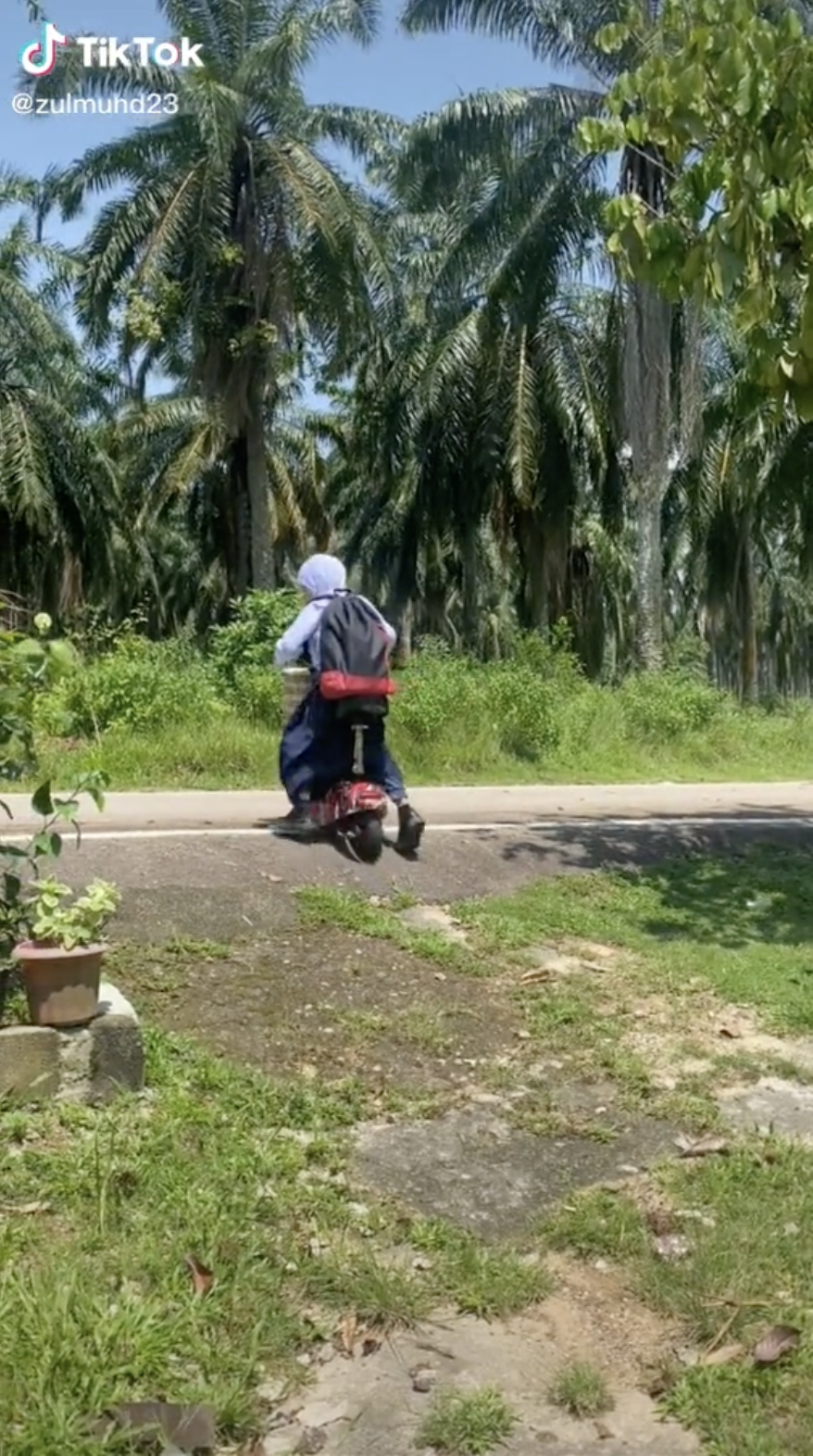 Menerusi video tersebut, seorang lelaki berkongsi aksi seorang budak perempuan yang menaiki skuter elektrik untuk ke sekolah.
