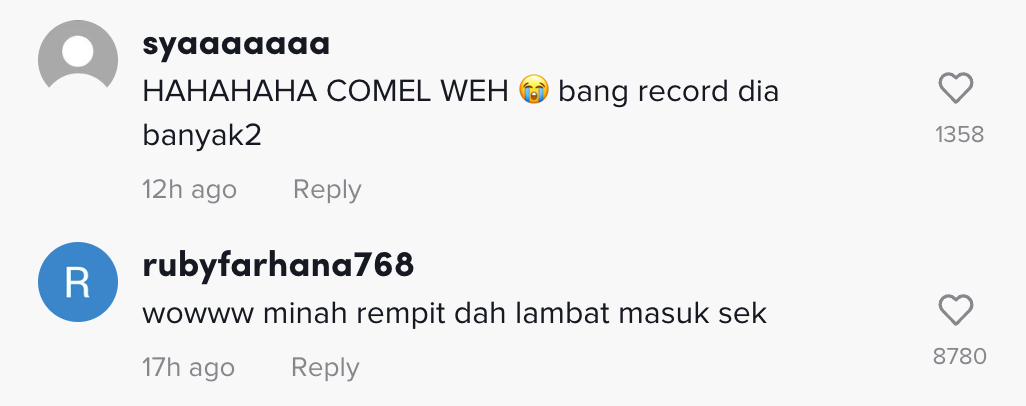 Berikut di bawah adalah antara komen menarik daripada netizen di TikTok: