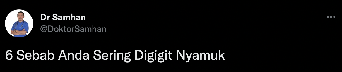Namun, tahukah anda sebenarnya ada 6 sebab mengapa anda sering digigit nyamuk. Ikuti perkongsian dari Dr. Samhan ini di bawah.