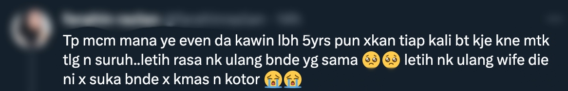Menerusi ciapan itu, wanita berkenaan berkongsi luahan perasaan kepada akaun Twitter tersebut.