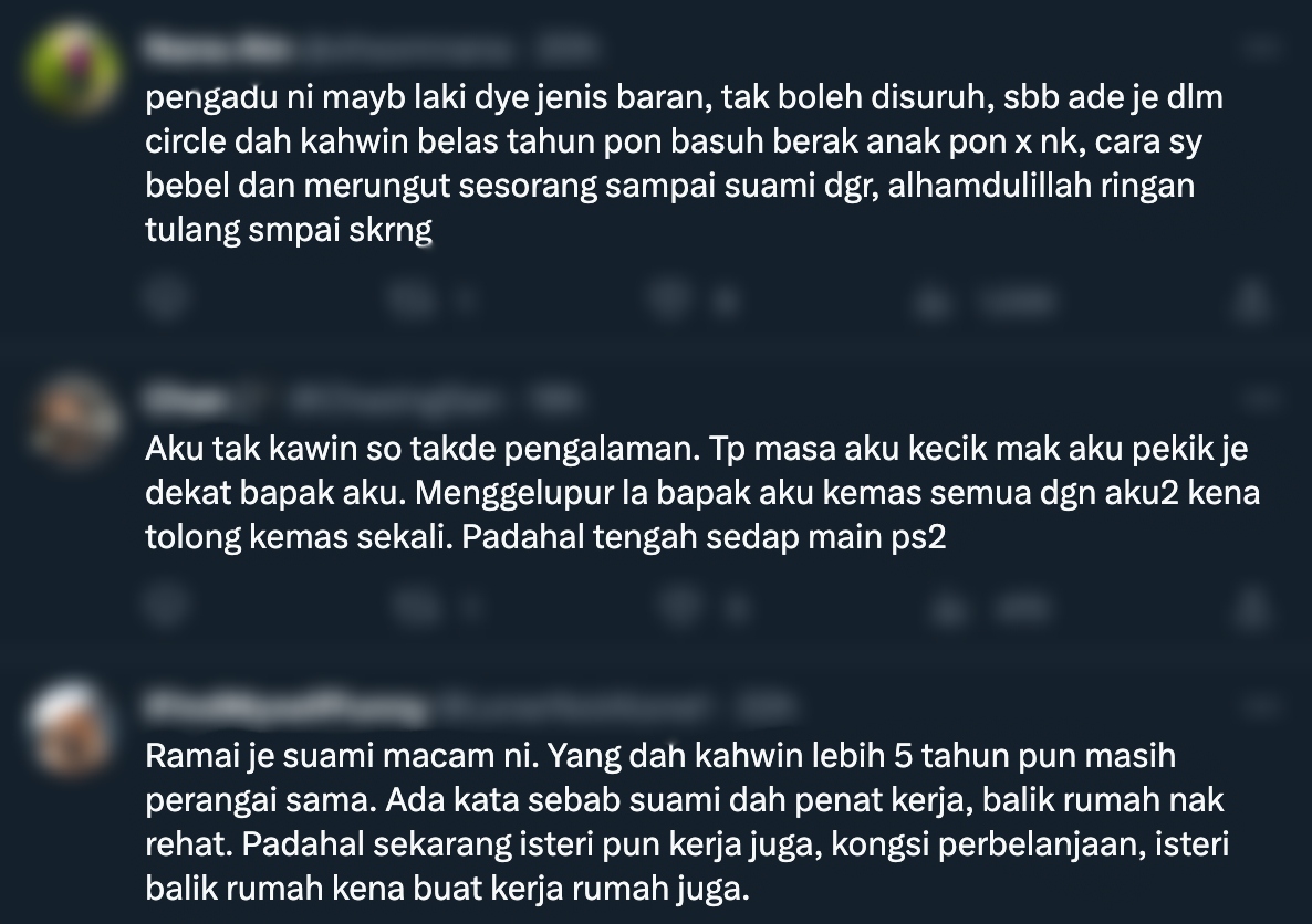 "Pengadu ni maybe laki dia jenis baran, tak boleh disuruh" – Netizen