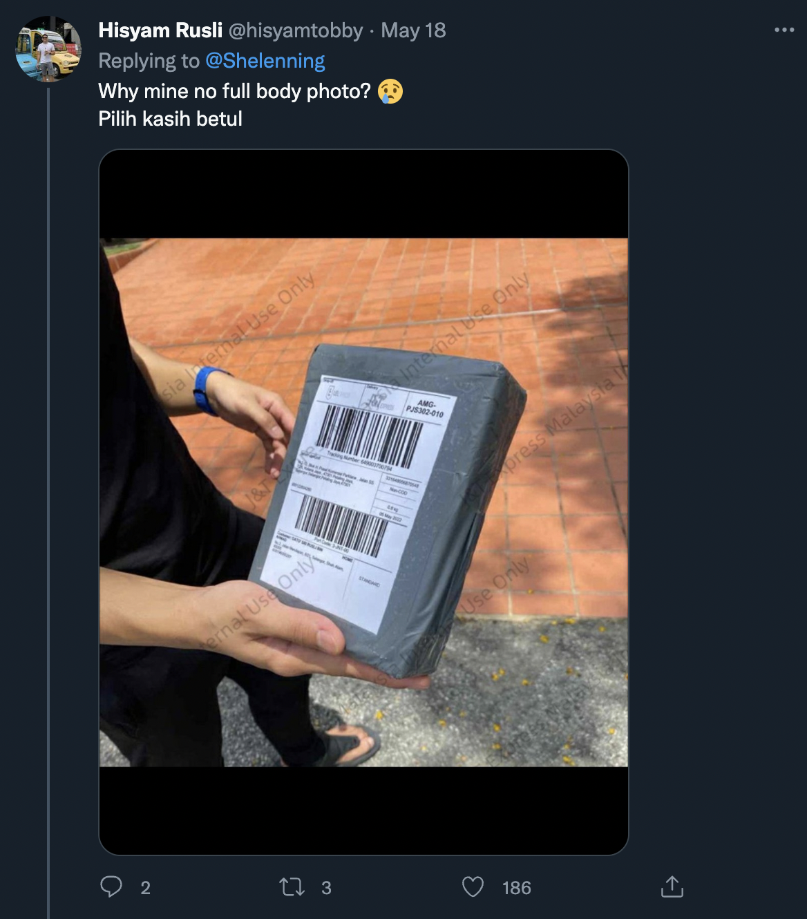 Dia kemudian terkejut melihat hasil gambar pada proof delivery kerana ianya kelihatan cantik. Malah, dia juga memuji pekerja tersebut pandai mengambil gambarnya dan tahu angle. Posting tersebut ternyata telah mendapat perhatian ramai.