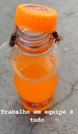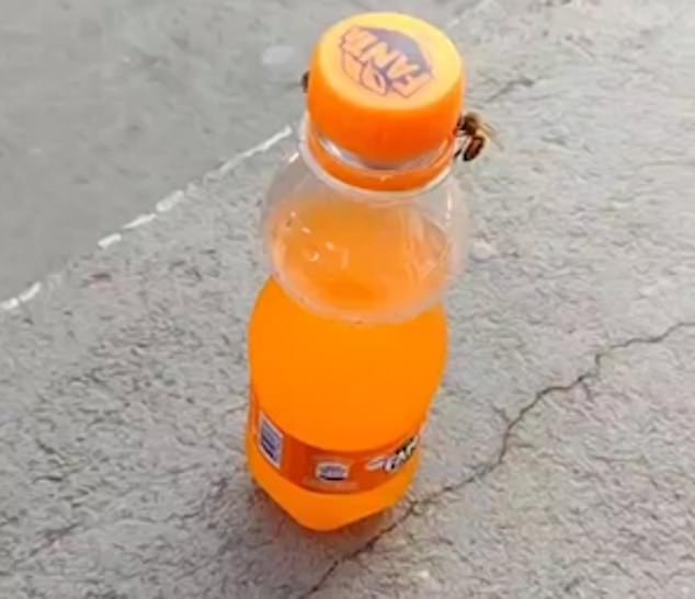 Menerusi video tersebut, kelihatan dua ekor lebah itu sedang berada di sisi penutup botol air Fanta berkenaan sebelum mereka membuka dengan memusingkannya bersama.