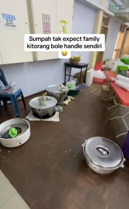 "Last kami tunggu malam tadi sampai pukul 9 malam memang tak ada respon, so kami decide adik-beradik untuk masak sendiri. Hanya kemampuan kami untuk siapkan dalam anggaran 400pax makanan. Itupun sekadar lauk ayam gulai, sambal belacan, buah dan ulam-ulaman.