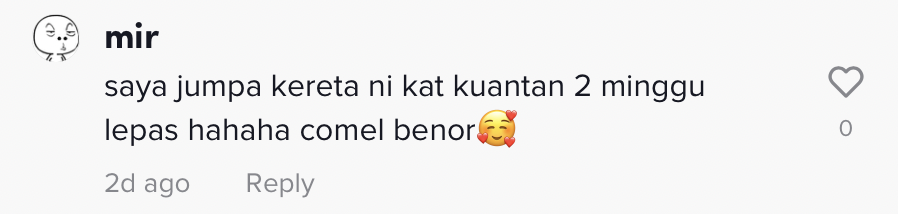 "Saya jumpa kereta ni kat kuantan dua minggu lepas hahaha comel benor" – Warganet