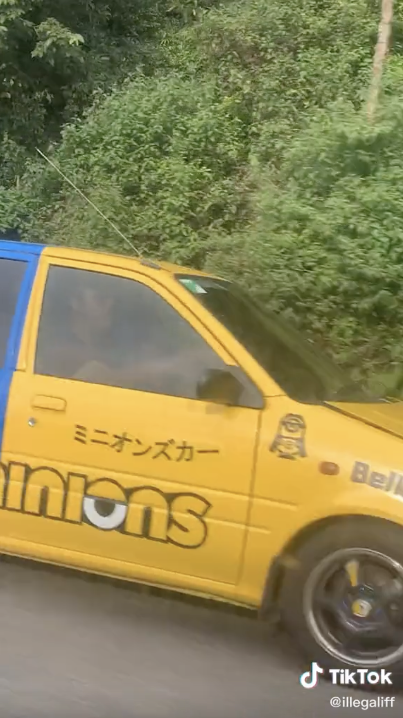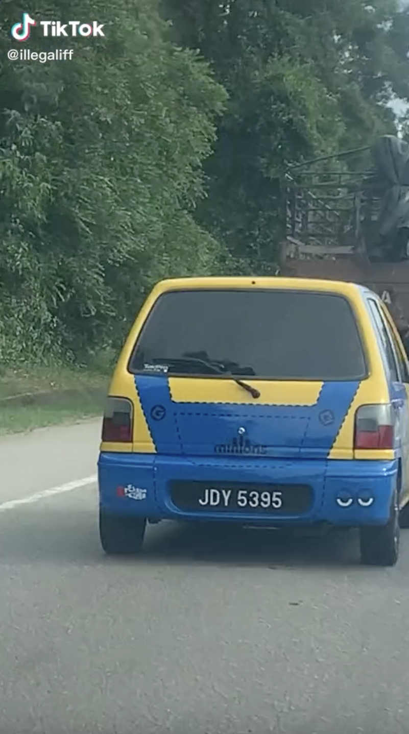 Menerusi video yang dimuat naik oleh @illegaliff di TikTok, kelihatan rakaman menunjukkan sebuah kereta Perodua Kancil versi Minion di jalan raya.