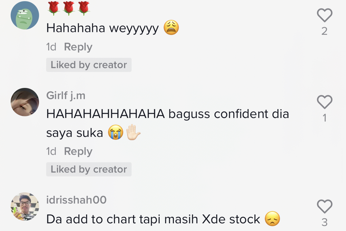Berikut di bawah adalah antara komen menarik daripada netizen di TikTok:
