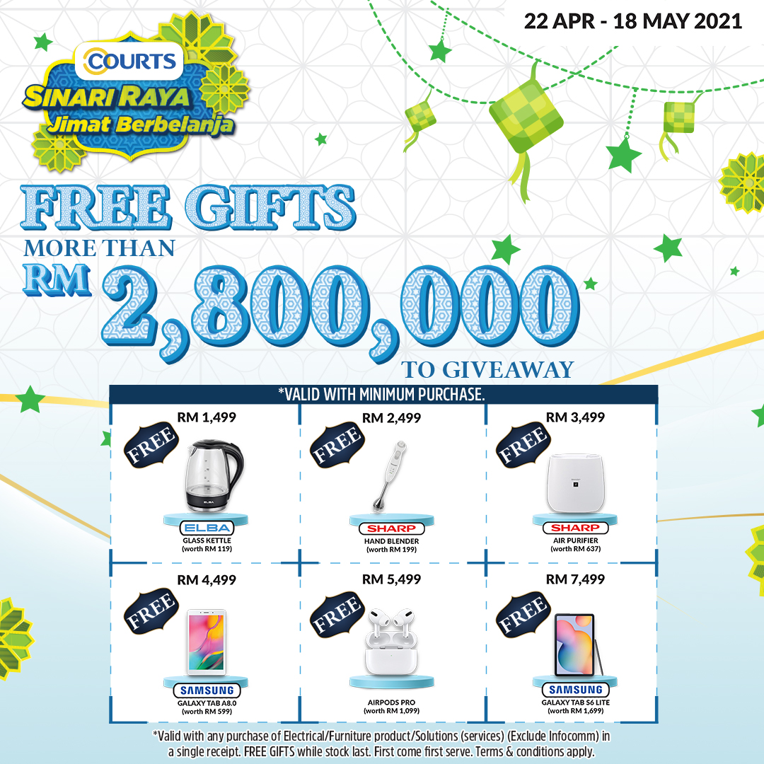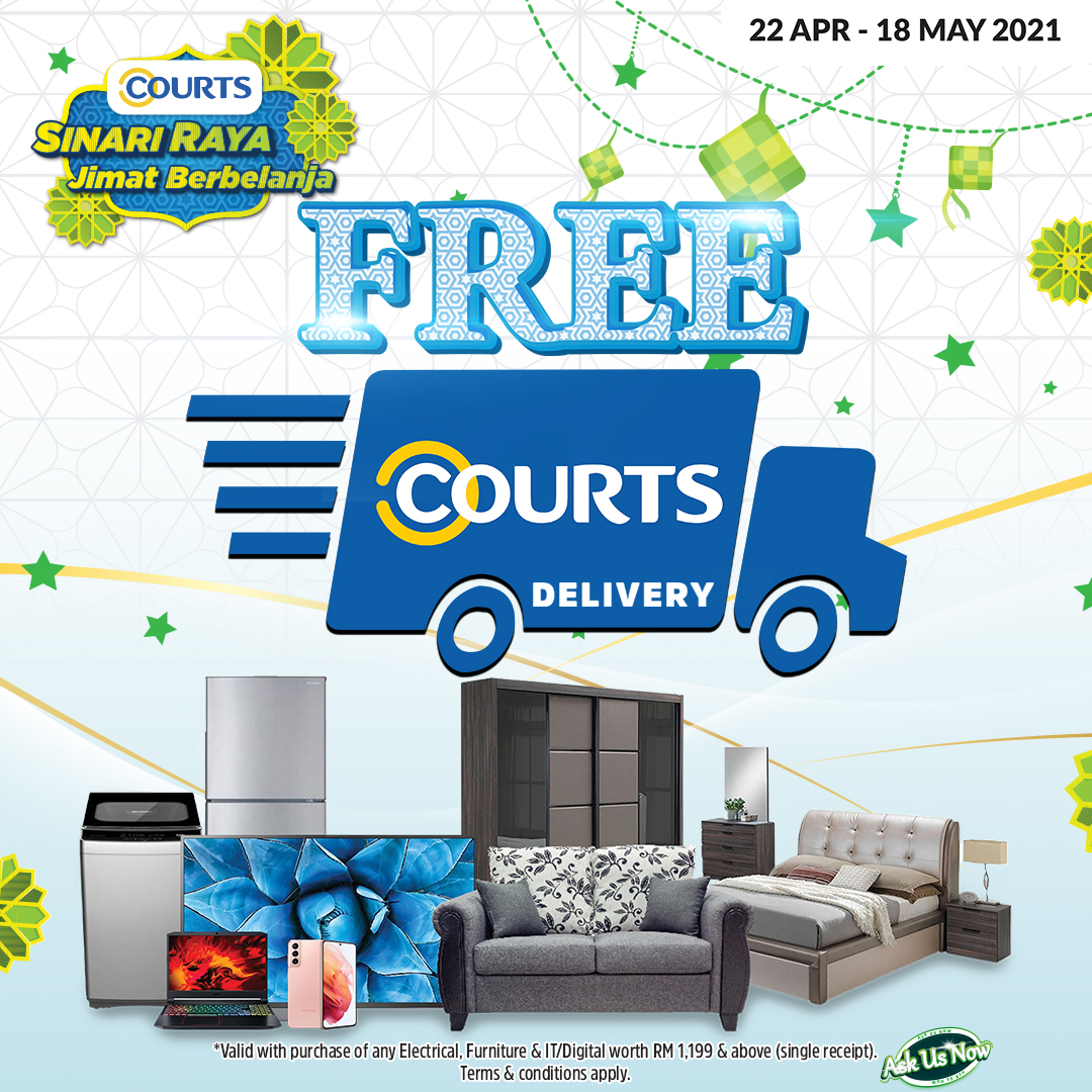 Kunjungi Courts berdekatan anda sekarang sehingga 18 Mei 2021 dan untuk maklumat lanjut mengenai promosi kami, layari laman web Courts atau akaun rasmi Instagram atau Facebook. Tertakluk pada terma dan syarat. Tonton video raya daripada Courts bersempena pandemik yang bertajuk Raya Ni Tak Best!